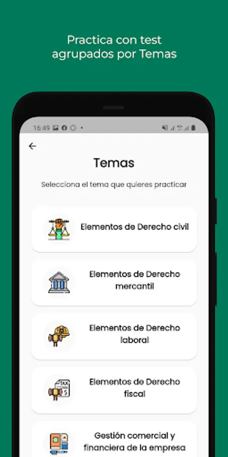 The questions have been grouped by Topics to facilitate the study, you can also do official exam simulations and you can enjoy many more features... TOTALLY FREE!