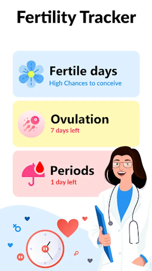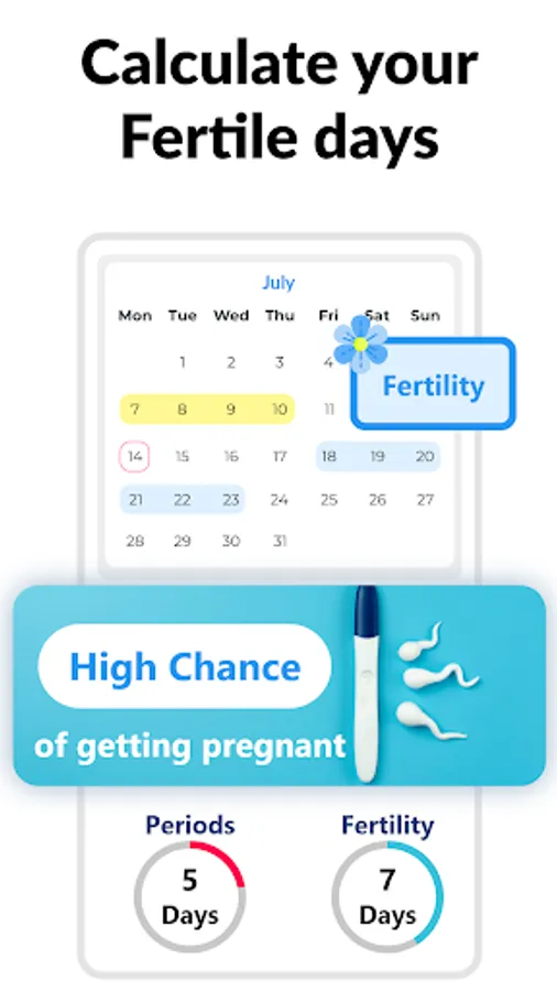 Our fertility tracker to get pregnant free app is simple to use. Just enter a few basic details inito fertility ovulation about your menstrual cycle, and we'll do the rest! We'll track period, ovulation, fertile days, and period calendar dates, so you can easily see when you're most likely to conceive.