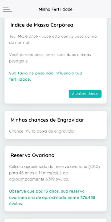 The full, paid version has an anamnesis that offers an INDICATIVE OF THE CAUSE OF INFERTILITY, in addition to helping to UPDATE THE EXAMS, VACCINES NECESSARY to BECOME PREGNANT and that can be accompanied by a doctor in your own city.