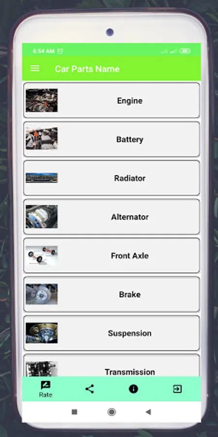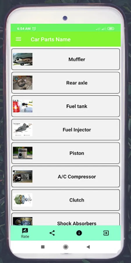 Car Parts Name From this app you can know the name of all types of parts of a car and its function. If you have an idea of the names of the parts, you can easily tell where the problem is. In this app, the names and pictures of each part have been discussed in a very beautiful way.