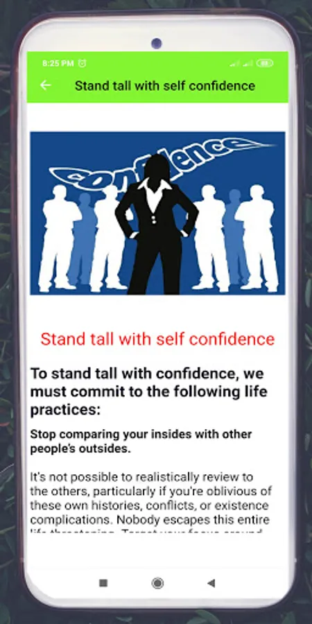 Confidence will improve in your work and in the past life of the person. This app is ways to build up self-confidence guide line.