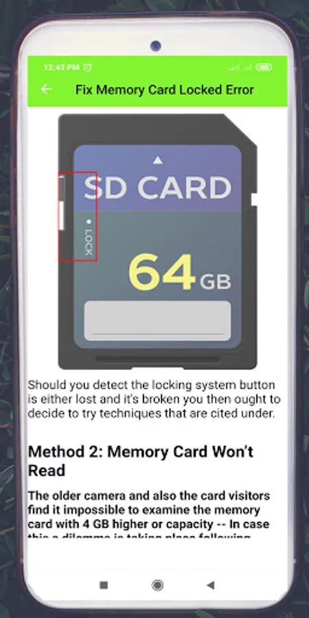 Corrupted Sd Card Repair Guide From this app you will be able to know and learn how to solve all the problems if you have any problem with Sd Card. Memory card will solve all the big and small problems. If the memory card is locked, you can learn how to unlock the method. The Ultimate Ways to Repair Damaged, Corrupted SD Card in this app And SD Card Repair, Recovery method. What are the causes of Sd Card problems and in the future so that you do not have to wear cautionary tips.