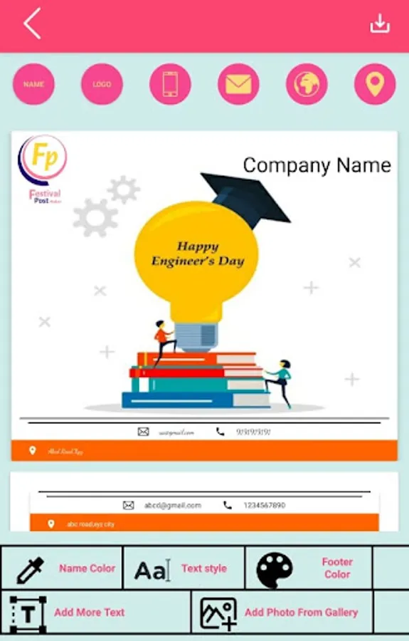 simply upload your brand logo design and business card details like business name, business email, business phone, or mobile number then App Business Name & Image Poster Maker app will automatically add on the festival photo or poster and that’s it