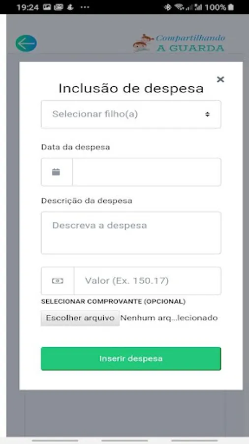 Space for launching expenses, with the possibility of attaching a document, with notification to the other parent, who may also upload document of the respective reimbursement of expenses, if applicable.