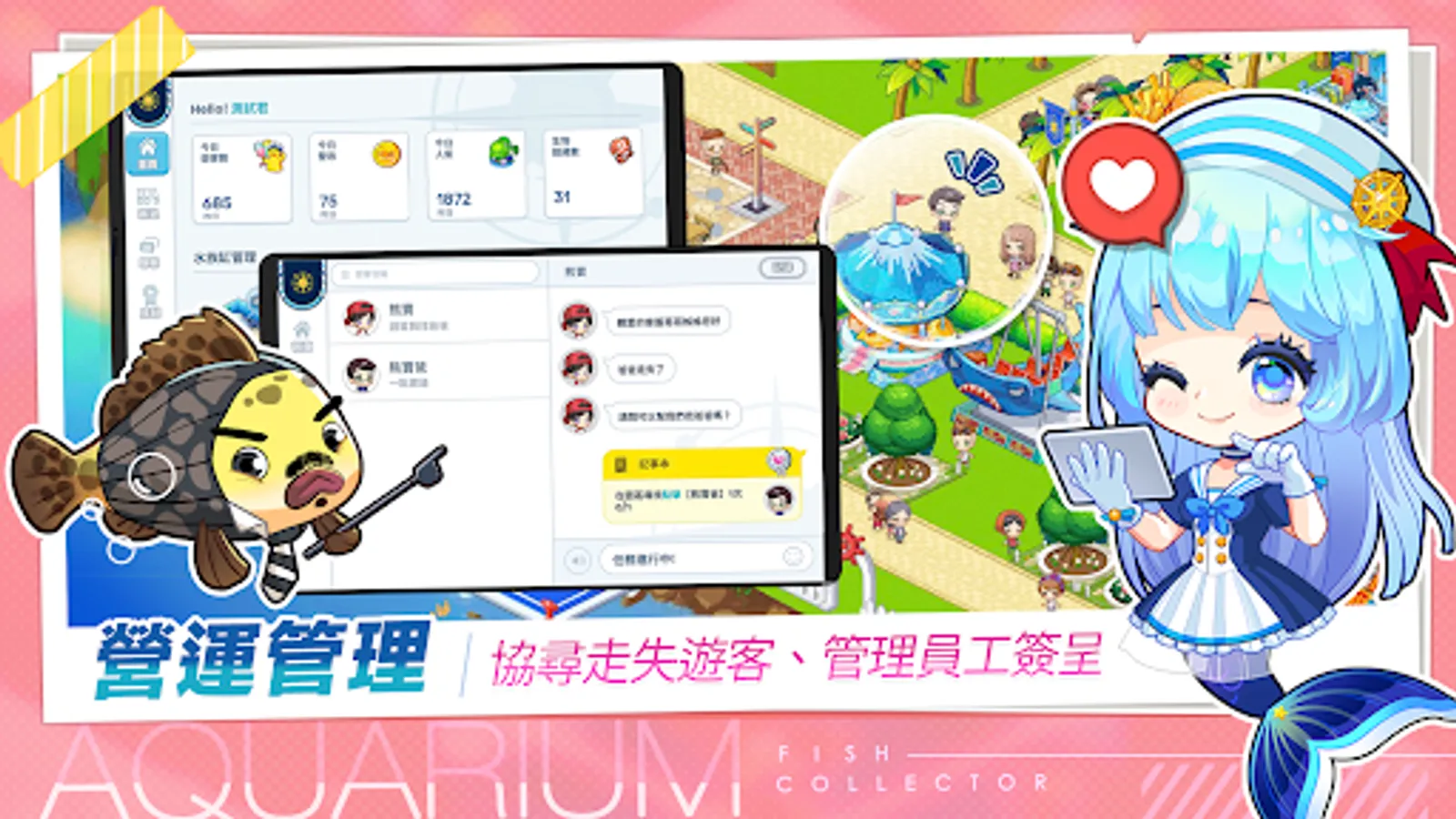 Solve various business issues, such as: decorating the park, producing goods, handling complaints from tourists, approving employee signatures and other tasks, and experience the fun of creating a dream aquarium. In addition, you can learn the cold knowledge of the ocean every day, cooperate with other aquarists to help each other, create your own and unique pocket aquarium, manage, raise fish, and make friends!