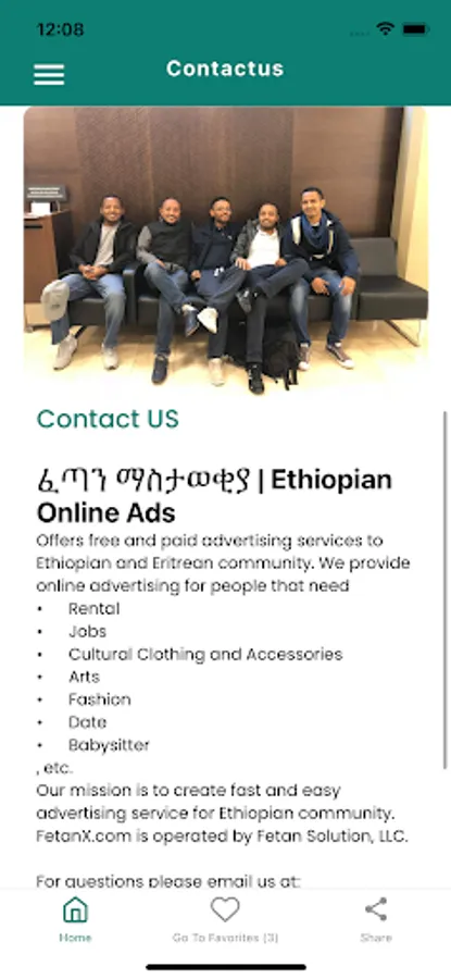 Offers free and paid advertising services to Ethiopian and Eritrean community. We provide online advertising for people that need • Rental • Jobs • Cultural Clothing and Accessories • Arts • Fashion • Date • Babysitter , etc. Our mission is to create fast and easy advertising service for Ethiopian community. FetanX.com is operated by Fetan Solution, LLC.