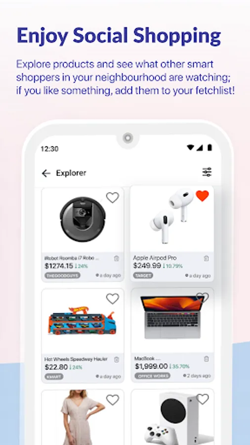 Price drops for your favourite products happen all the time, along with the best prices available at other online stores that you have to spend hours searching for. Wouldn't you want to be the first one to find these amazing deals? Now you can, with Fetchie - your personal smart shopping assistant. You can track price drops on your favourite products, get incredible deals, and save money on your next purchases.