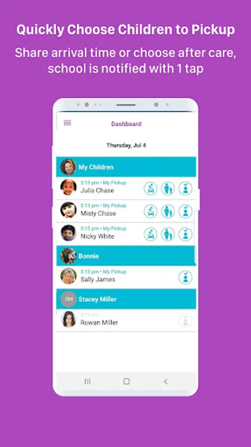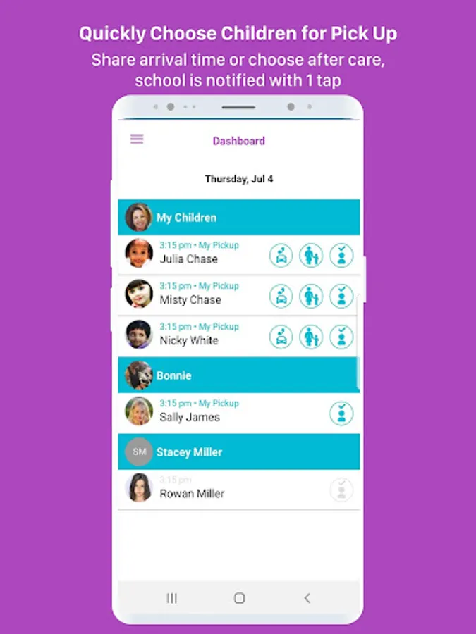 FetchKids simplifies the entire process of end-of-day student pick-ups. FetchKids is a win-win for everyone involved in coordinating student pick ups at the end of the day. This easy system organizes the way in which students are released to their parents.