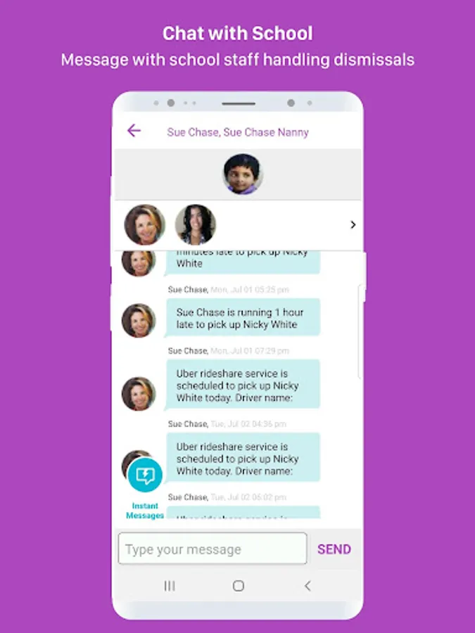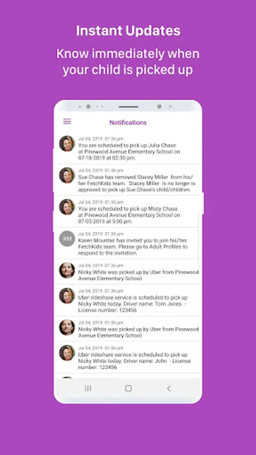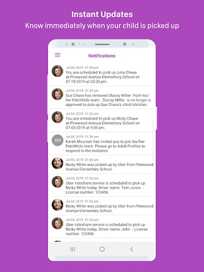 Parents download the FetchKids app to communicate with school staff. Afterschool monitors receive instant communications about parent arrival times or any change in designated pickup person. Schools manage the entire FetchKids system via an admin website.