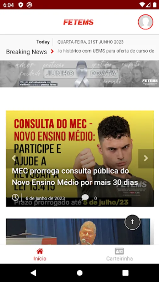 The Fetems Application is a direct communication channel between its Sinteds and Affiliates, providing greater communication agility as well as the availability of the New Digital Carteirinha.