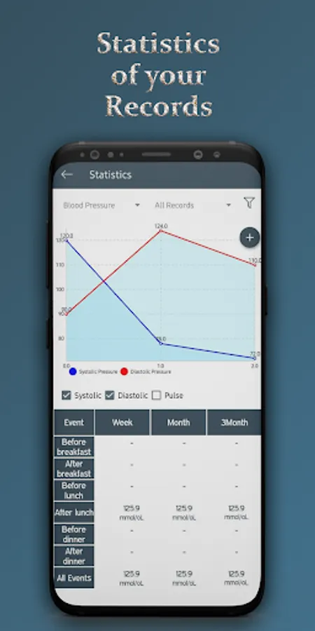 6 Blood Glucose statistics for week, month and 3 months including all events.