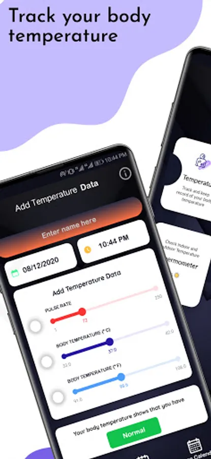 Temperature detector and fever thermometer app is used to track different values like flu tracker, baby fever tracker, pad fever, medical records tracker, flu symptoms. This Body Temperature Logger and kinsa smart thermometer will help the user to maintain the record on regular interval. Fever is one of the most common medical signs and is characterized by an elevation of body temperature above the normal range of 36.5–37.5 °C (97.7–99.5 °F). The user can take decision on the basis of this record.