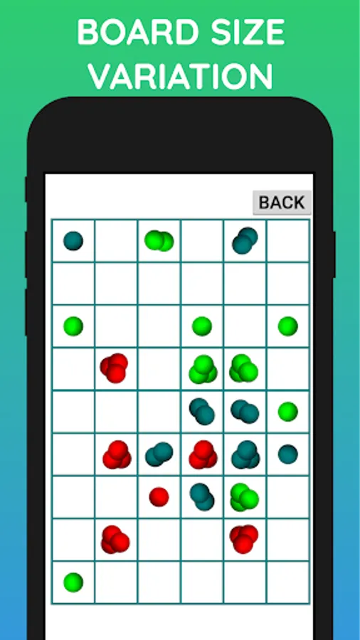 Players take it in turns to place their orbs in a cell. Once a cell has reached critical mass the orbs explode into the surrounding cells adding an extra orb and claiming the cell for the player. A player may only place their orbs in a blank cell or a cell that contains orbs of their own color. As soon as a player loses all their orbs they are out of the game.