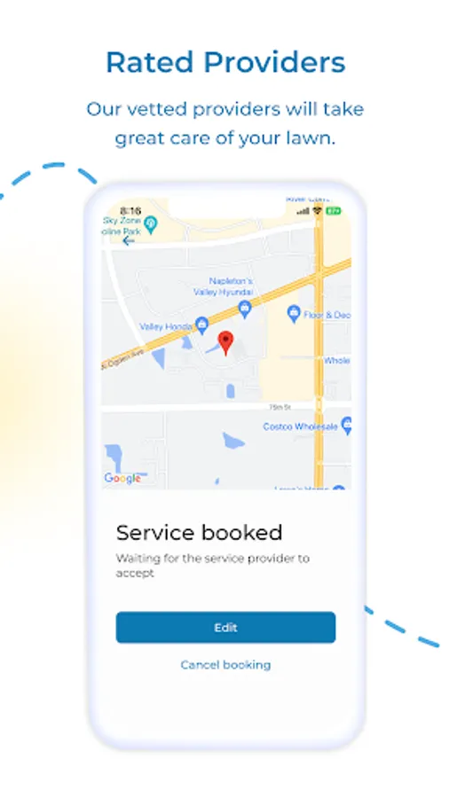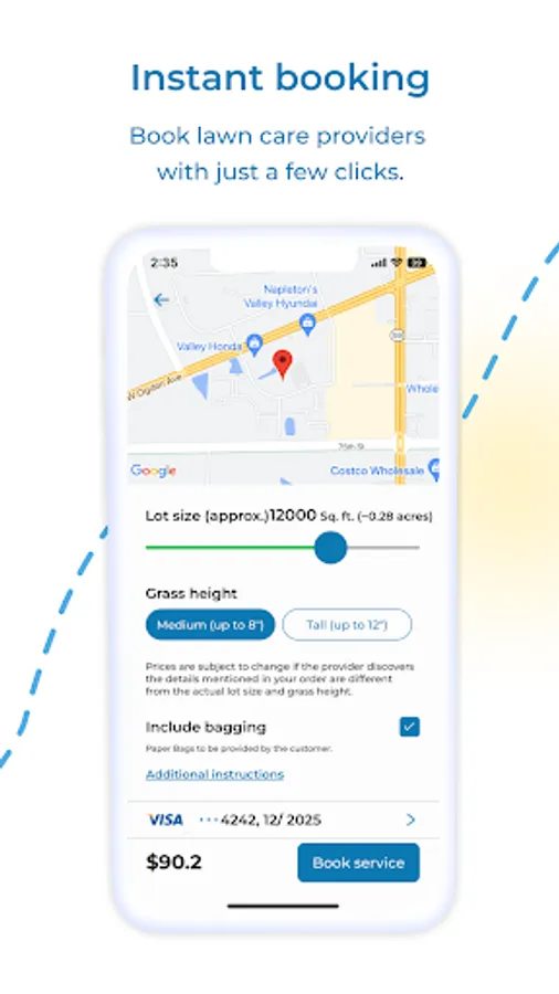 1. Easy Booking: Say goodbye to phone calls and endless coordination. With our app, booking an on demand professional lawn mowing service is a breeze. Simply open the app, choose your lot size, grass height, see the price and book an order. Sit back and watch as our trusted lawn care providers handle the rest.