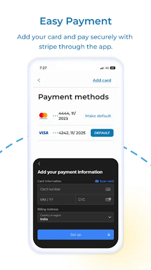 4. Convenient Payment Options: No more scrambling for cash or dealing with checks. Our app powered with Stripe offers secure and convenient payment options, allowing you to pay for services with just a few taps. It's quick, hassle-free, and ensures a seamless transaction every time.