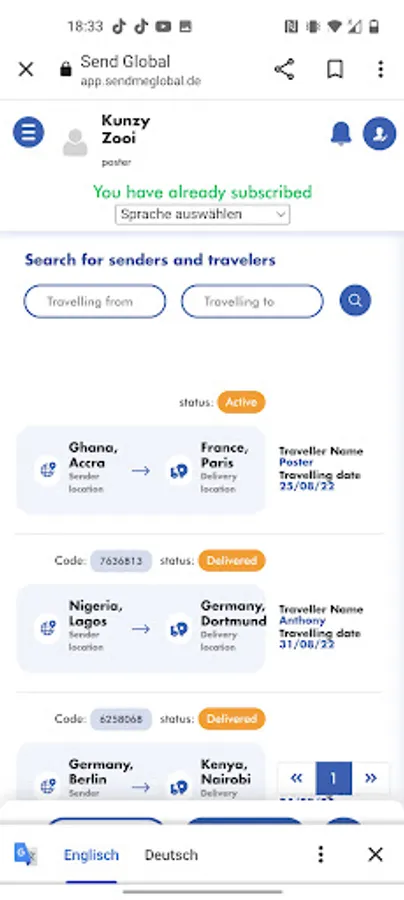 Connect with the travelers and negotiate delivery terms and fees.