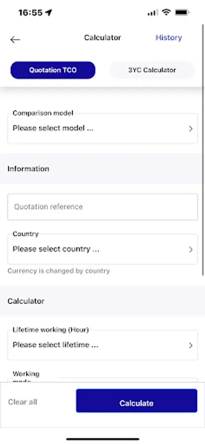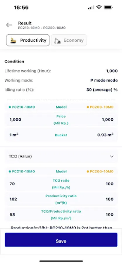 This application is used for calculating price quote for Komatsu customer with specific parameters. The results can be represented in numerical values and graphs.
