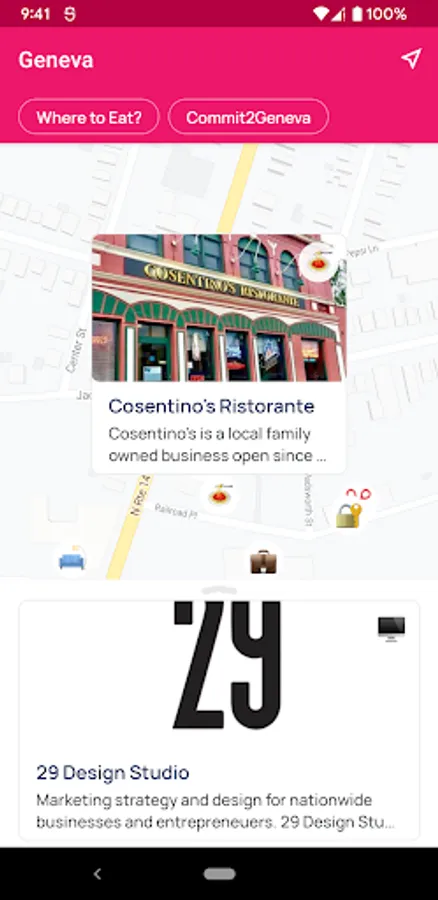 • Visually connect with what makes Geneva BID unique! Each emoji represents a great place for you to try. No more pins, numbers or tricks!