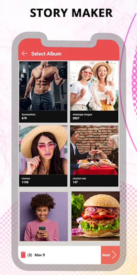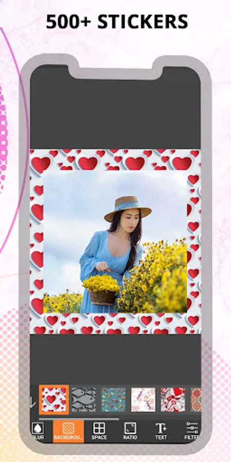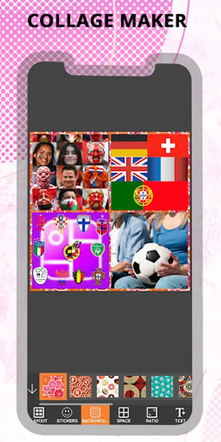 🌟 Large selection of different photo frames, patterns and ”photo grids”!