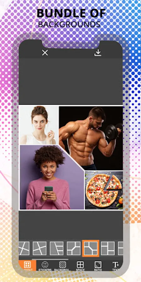 🌟 Share your collages on social networks or save them to your gallery!