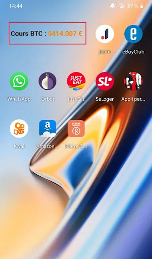 Simple widget displaying the price of bitcoin in euros. The course is updated every 30 minutes