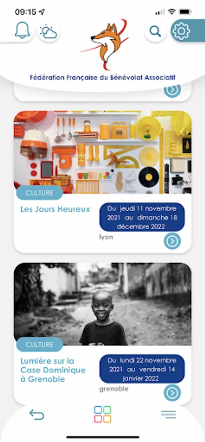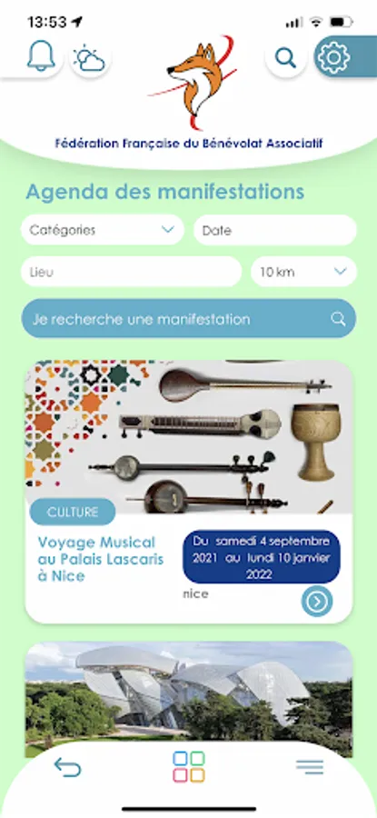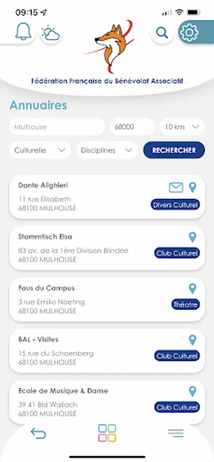 Information from the associative world, the agenda of activities, with a search either geographic (radius of 10, 50 or 100 km) or thematic. (9 families)