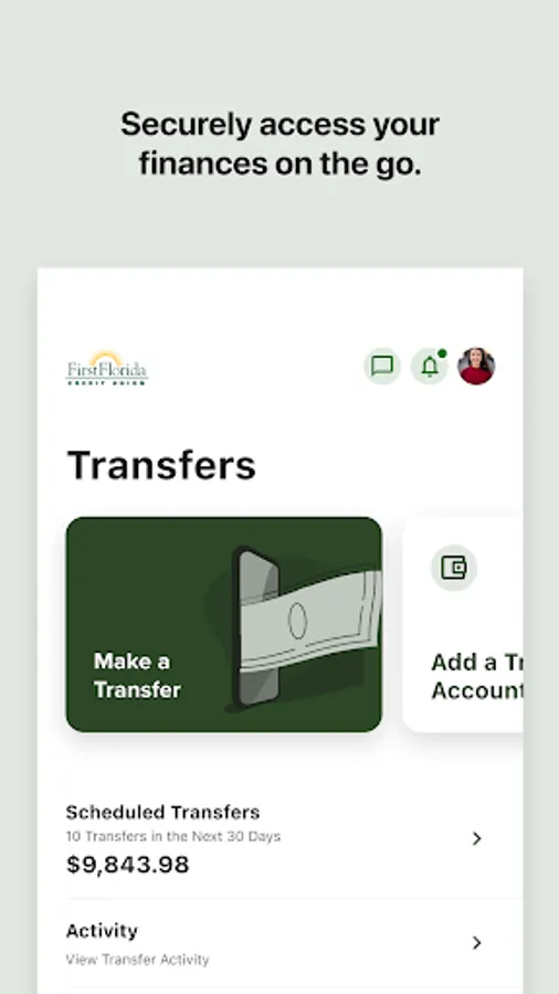 Our next generation Mobile Banking app utilizes the latest technology to provide convenient tools, smooth navigation, along with the latest security features. Experience the freedom that comes with banking from anywhere with First Florida’s Mobile Banking App. Get immediate access to your First Florida accounts whether you are at home, on the road, or at work.