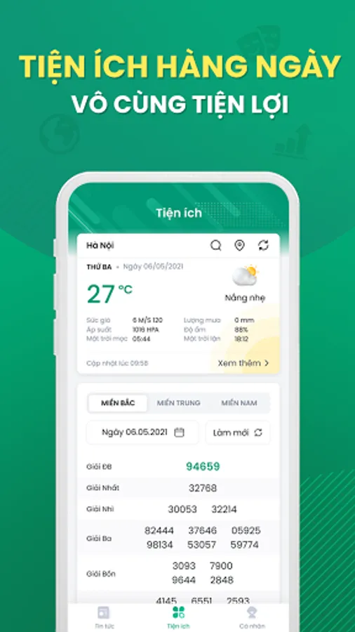 * Tích hợp các tiện ích Giá vàng, Ngoại tệ, Lịch vạn niên, Thời tiết, Kết quả xổ số