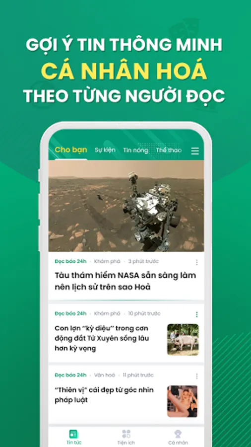 * Bảng tin được cá nhân hóa, tự động gợi ý các tin tức phù hợp với sở thích