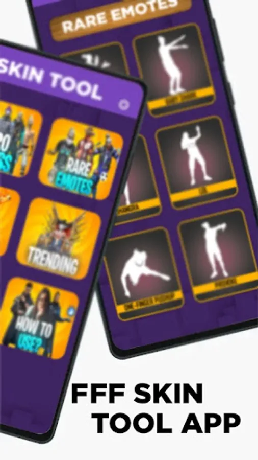 FFF Skin tool is one of the best and simple app that allows users to entertain by getting FFF Skin Tools, Elite Pass Bundle, Elite Emotes and gun skins for entertainment.