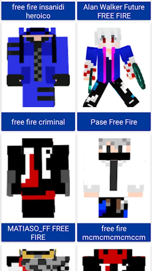 free of fire Skin for minecraft, is best collection of characters the popular battle royale game.