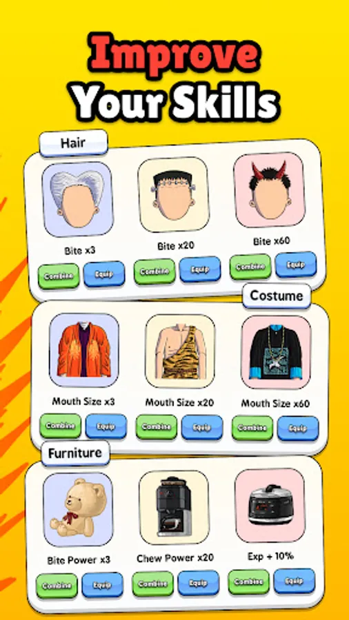 ● Strengthen various skills such as eating power, chewing, mouth size and stomach size.