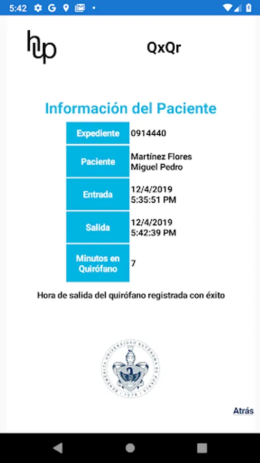 QxQr is a mobile application whose functionality is to register the entrance and exit of a patient's operating room through a QR code corresponding to it.