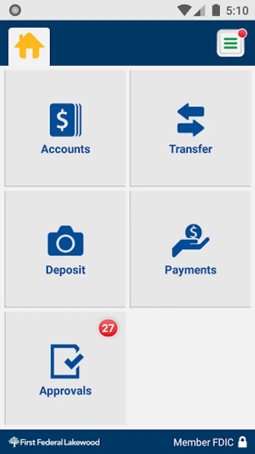 • Approve transactions scheduled through First Federal Lakewood’s Business Online Banking, including fund transfers, ACH transfers and wire transfers