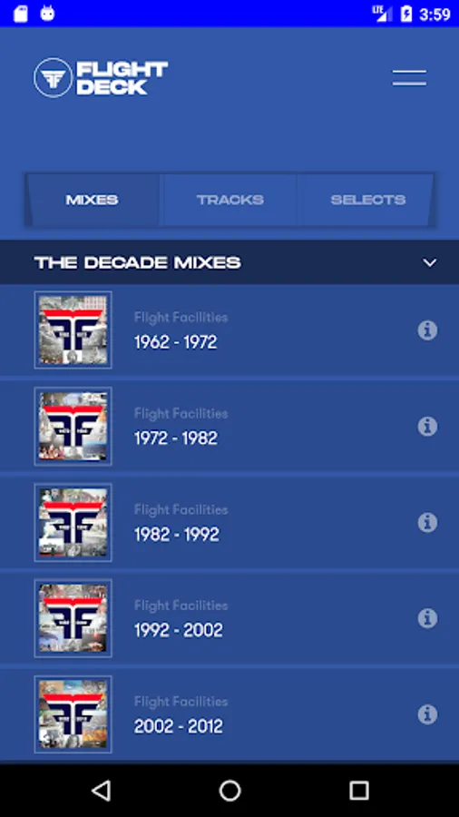 Jump into a decade, fire up a mix. The Flight Deck app experience has a unique player with info about the track at specific intervals.