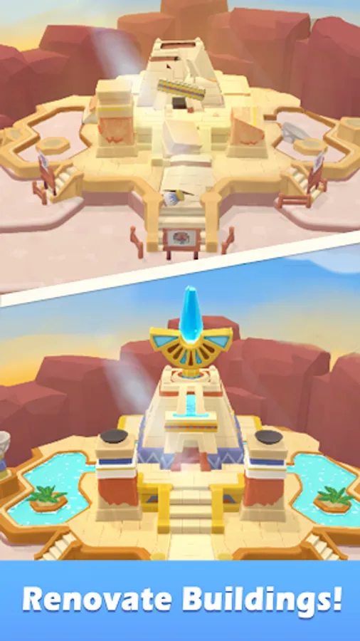 Explore Desert: Using resources to unlock new blocks, discover new areas, new buildings, new stories, and new gameplay.