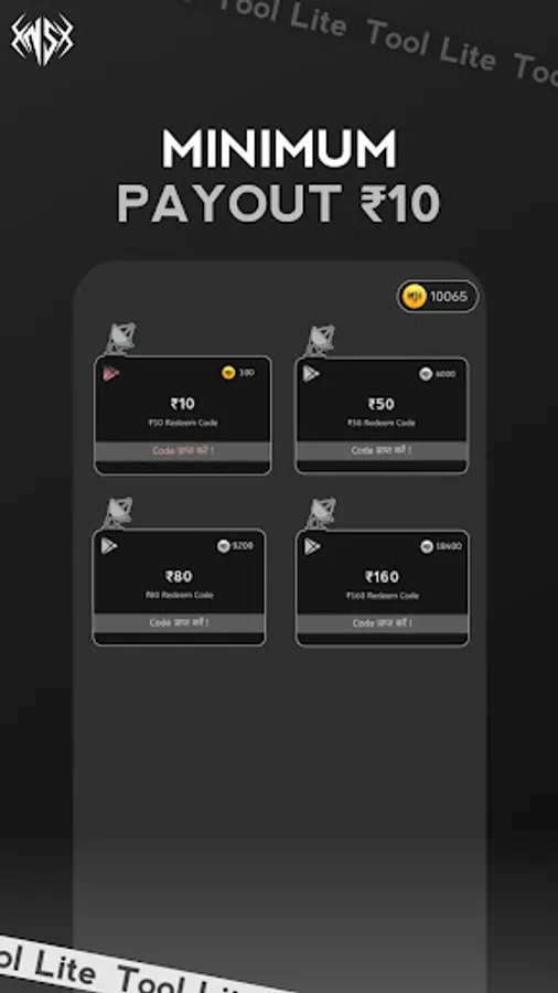 Introducing Tool Lite, the app for earning diamonds, uc and redeem codes for your favourite games. With our app, you can effortlessly earn redeem codes by completing a variety of tasks. Play over 250+ games, participate in Survey, And Win Spido Coin to earn redeem codes.