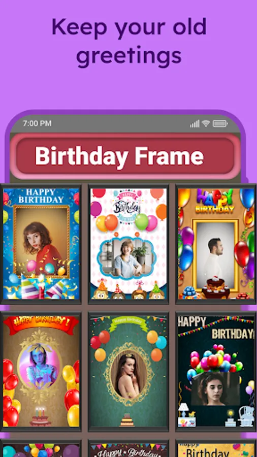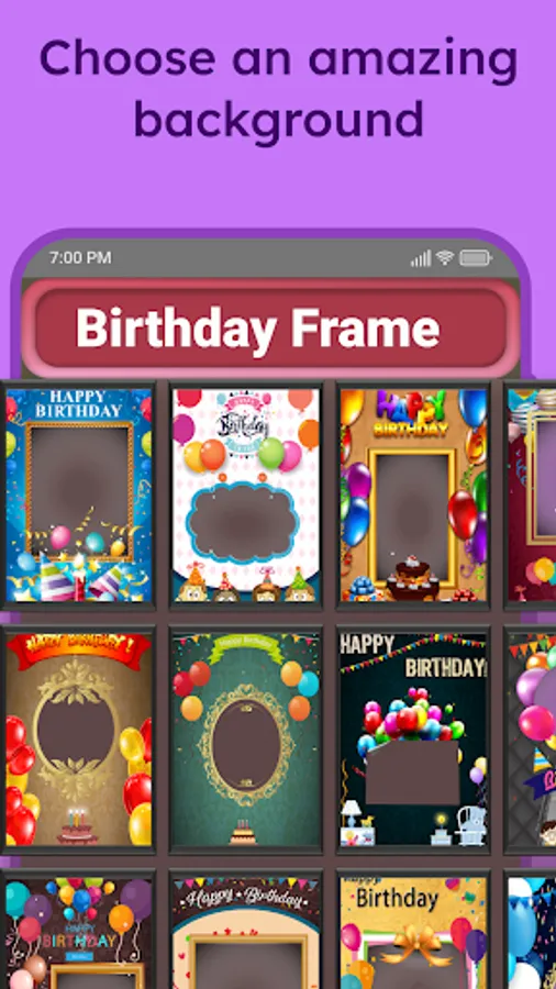 - Use the Birthday photo editor feature and choose incredible frames for the background.