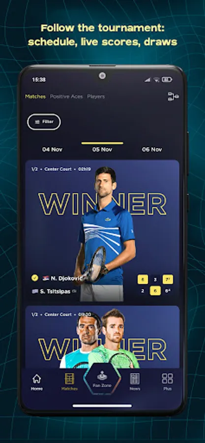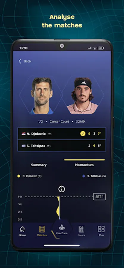 Find enhanced match pages. Who will win? Are we going to live a remarkable comeback? Dive into the heart of the game thanks to the Summary and Momentum metrics. Also find the schedule, live scores, draws and player profiles pages.