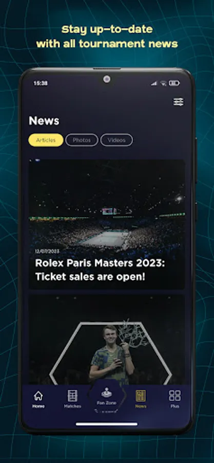 Find the newsfeed featuring articles, videos and photos. Personalise your experience and feed by activating the notifications and adding your favourite players.