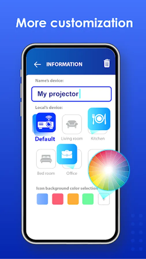 The free universal projector control app will replace the physical remote, in case the battery runs out or the remote is damaged.