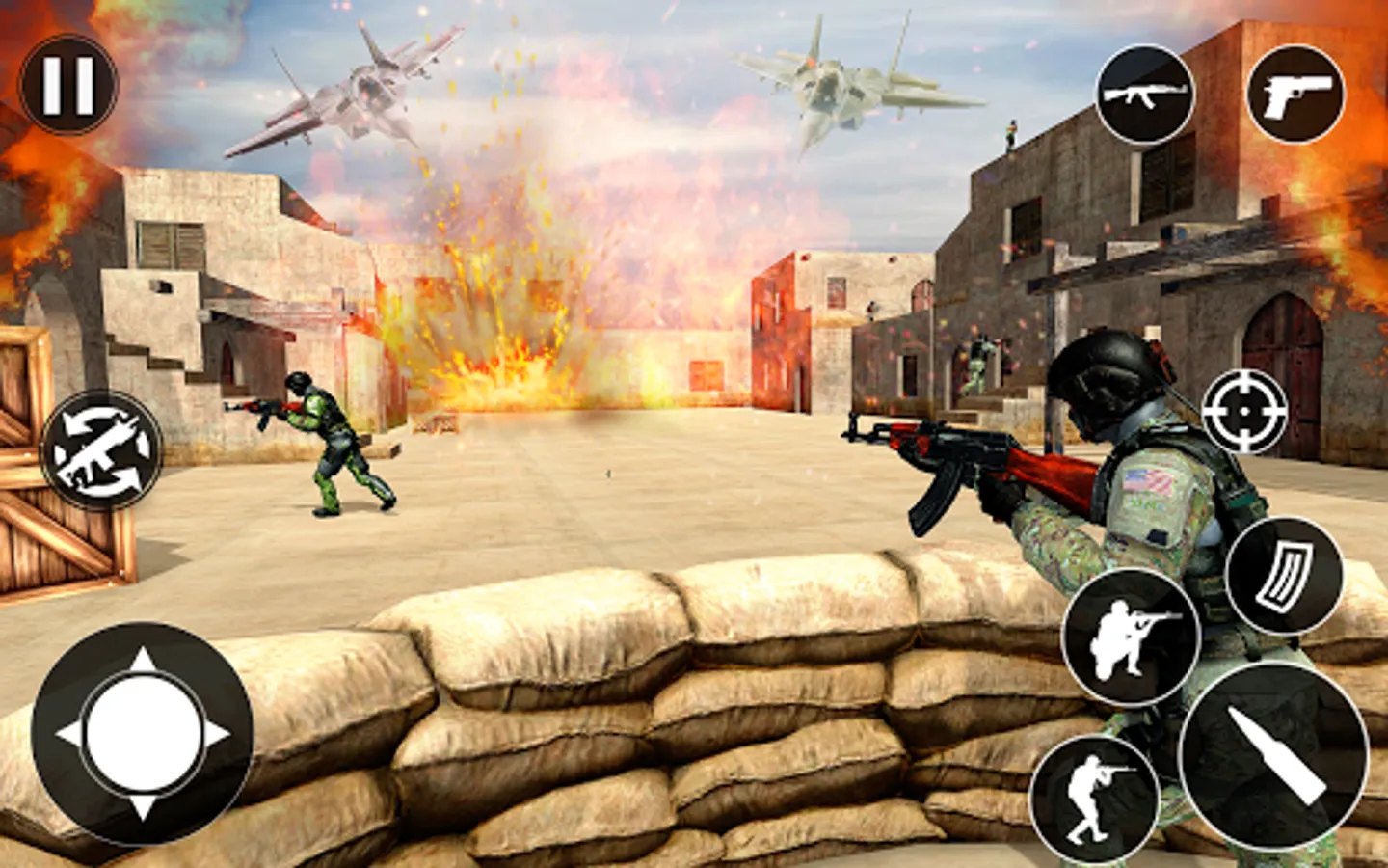 Play like a real commando and start your first fps shooting task by using destructive guns and prove yourself the best counter terrorist shooter. Use joystick to move and shoot button to shoot anti-terrorists enemies by playing offline shooting games with smooth controls and topnotch back ground music