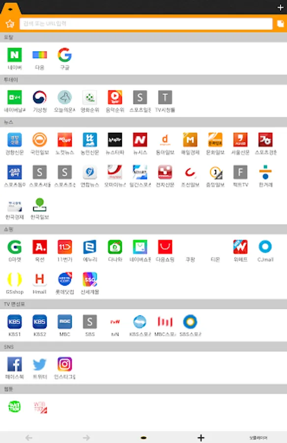 Please collect frequently used portal site tailored to Koreans, weather, movies, sports, news, shopping, TV, SNS, Real Madrid and a dictionary.