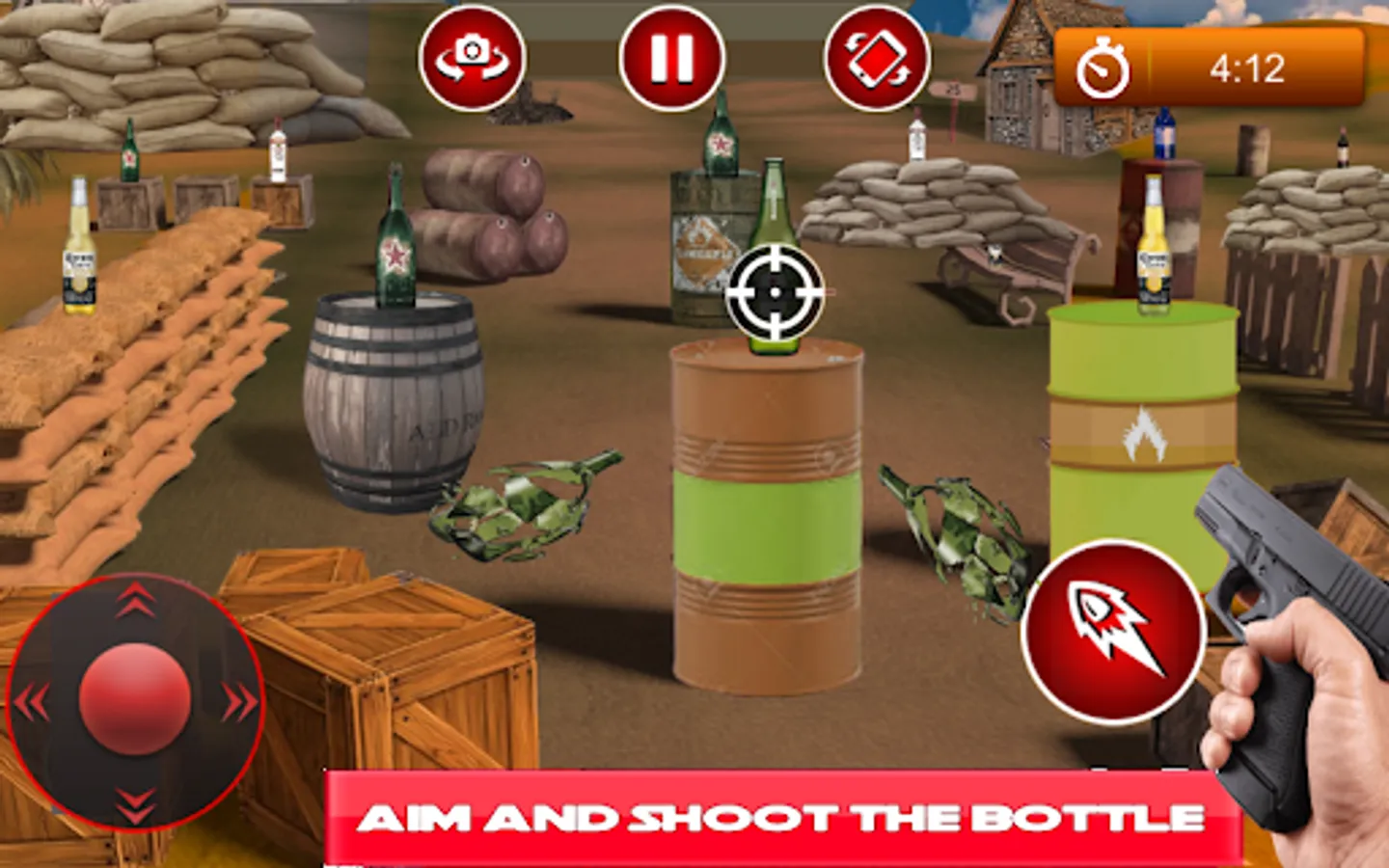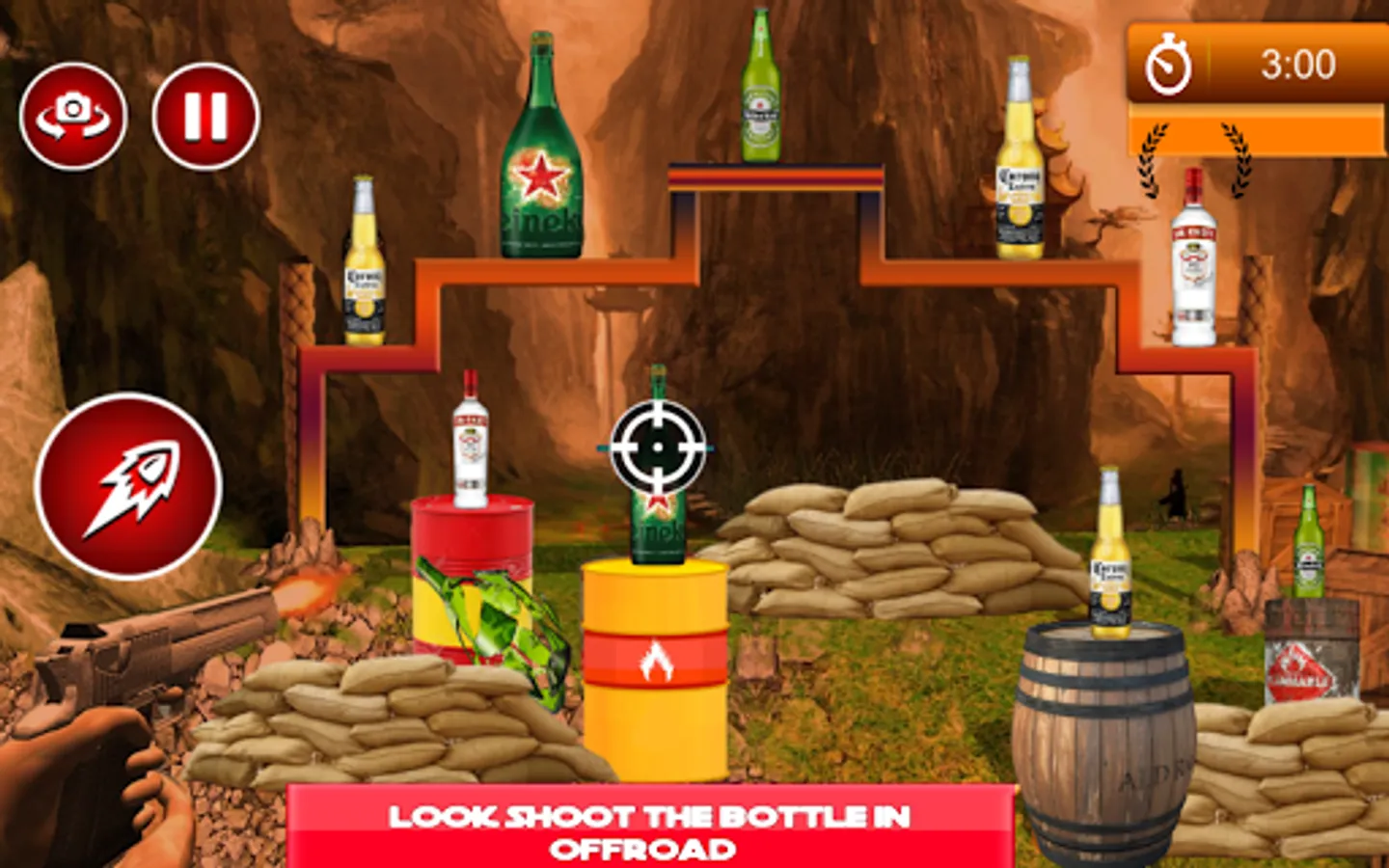 • Interesting and immersive levels in bottle shooting game.