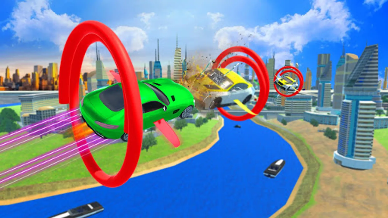 • Play with your friends with non-stop action game, top flying car stunt racing game