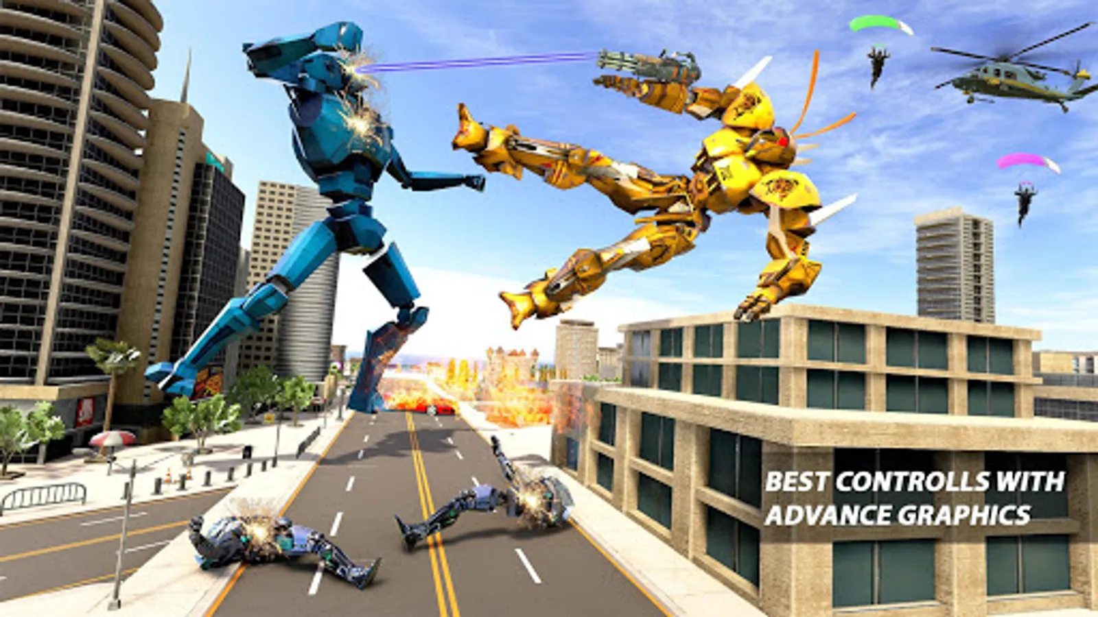 Future robot transformation games is with multi robot transform techniques give you new joy of robot mosquito flying games. Now a days flying taxi car games or also dog robot games are famous in the world. Jump into futuristic robot transforming games for robotic battle mosquito and robot transformation with golden robot car transform of flying robot battle games. Multi robot are also famous to ruin country so, you have to ready flying mosquito robotic fight with monster robo to destroy city crash evils in this mosquito robot transforming games.