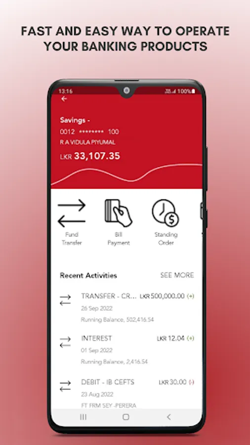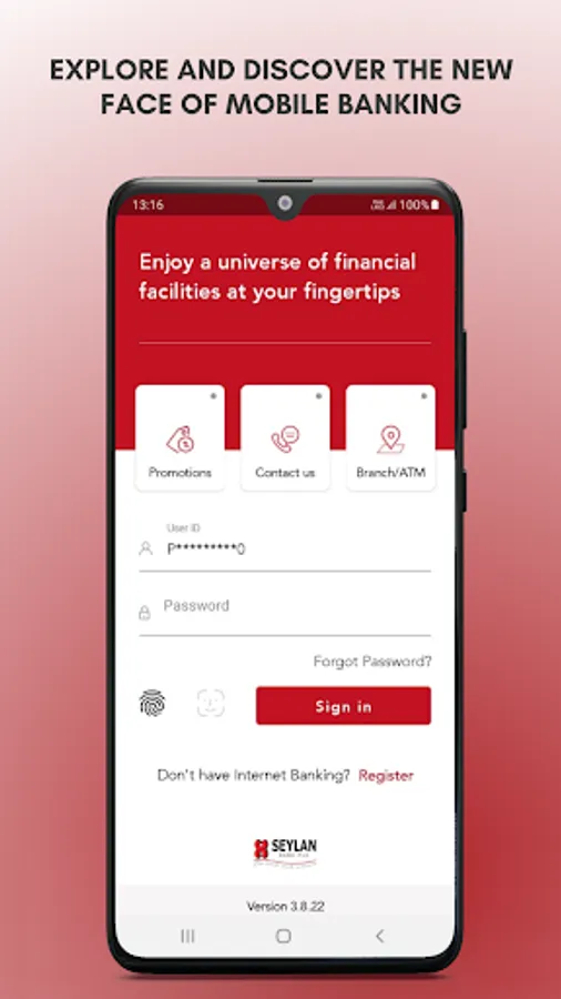 Simply download or update the App and use the existing User ID and Password already issued to you for Seylan Internet Banking to do your financial transactions.
