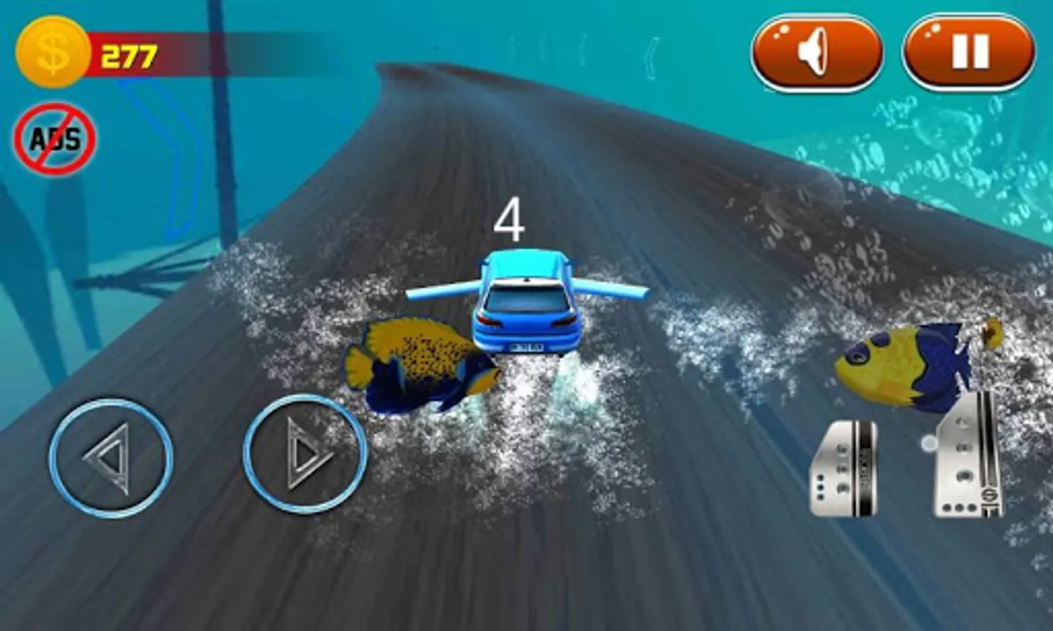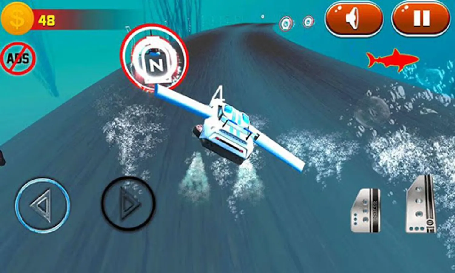Flying Car simulator games under the sea surface. Car dynamics underwater are totally different, floating like a submarine in the silky smooth ocean water surface, keeping the flying car headlights on for acute visibility underwater. It’s a Water sports game that has futuristic underwater driving games.