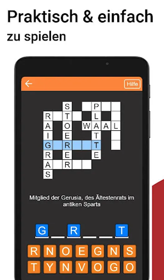 Crossword German Free is a simple yet addictive puzzle game that you will love! Countless hours of fun are waiting for you! Improve your thinking and spelling skills! Test yourself and train your brain.