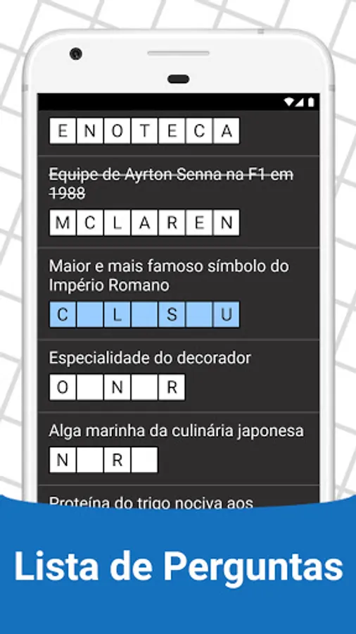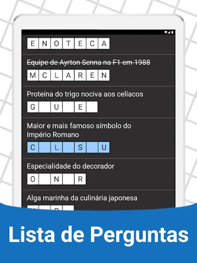 "Crosswords" is made exclusively for mobile devices, with a simple and intuitive interface the game is ideal when you're on the move.